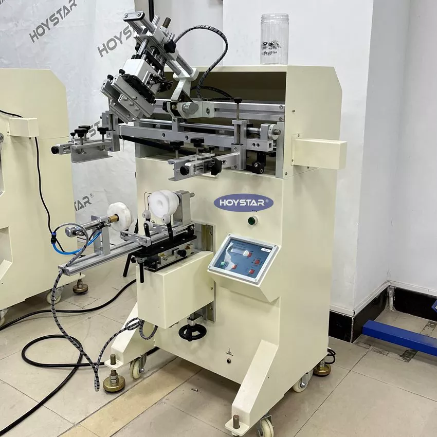 Professionaalse tootja ja tarnijana on HOYSTAR 1 värviline ekraanprinter silindriliste toodete jaoks loodud kiireks ja ühtlaseks printimiseks erinevatele kõveratele pindadele. See töötab märkimisväärselt madala müratasemega ja annab partiide kaupa stabiilseid kvaliteetseid väljatrükke.