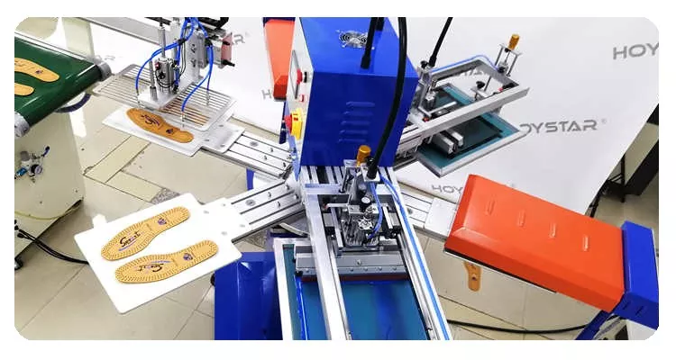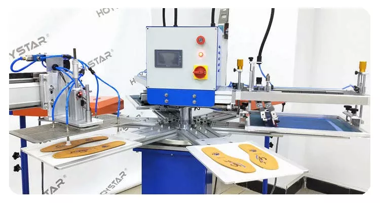 Automaatne kahevärviline siiditrükimasin kinga sisetalla jaoks 6 tk töökoha ja 2 tk kuivatussüsteemiga