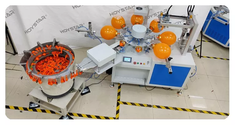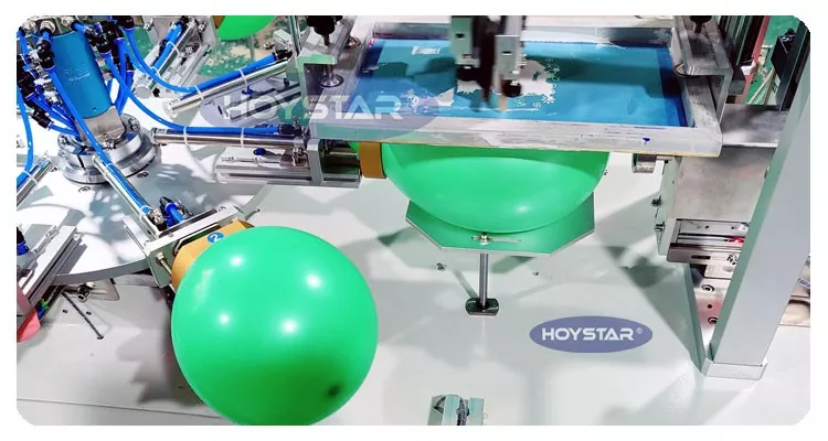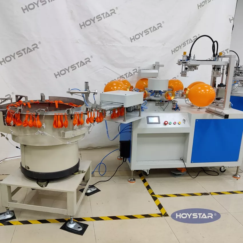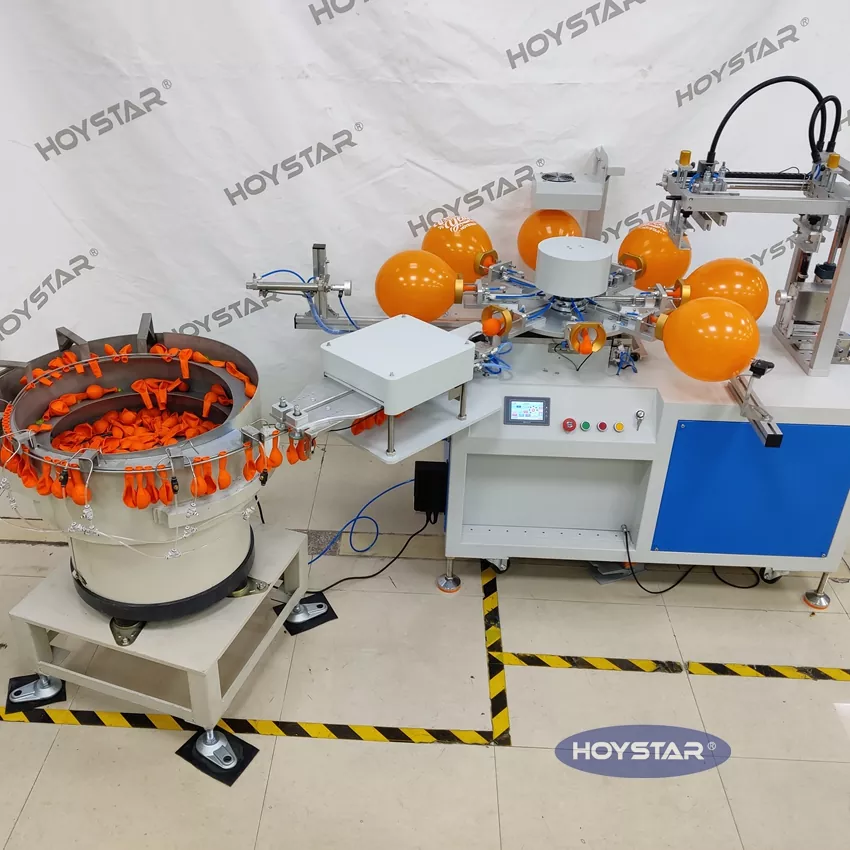 Professionaalse tootja ja tarnijana on HOYSTAR täisautomaatne 1 värvi õhupallide siiditrükimasin. on mõeldud lateksõhupallidele printimiseks. Varustatud pöörleva töölauaga, automaatne laadimine, automaatne puhumine, automaatne pöörlemine, automaatne kuivatamine, automaatsed mahalaadimisfunktsioonid. PLC puutetundlik juhtimine, kasutajasõbralik liides turvaliseks ja intuitiivseks kasutamiseks. Masin ühendab endas kiiruse, täpsuse ja kasutusmugavuse.