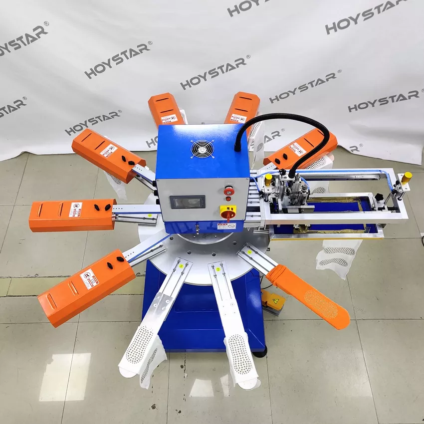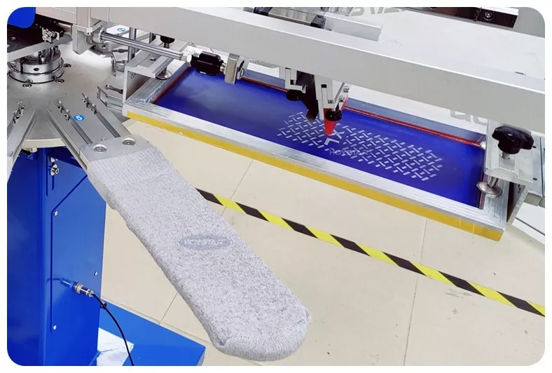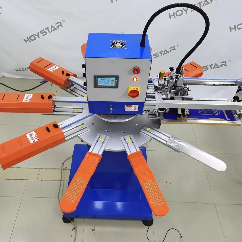 Professionaalse tootja ja tarnijana on HOYSTAR High Rapid siiditrükimasin sokkidele mõeldud kasutamiseks tekstiili kudumistööstuses. Kiirusega kuni 1000TK/H, sobib libisemiskindlate sokkide, beebisokkide, täiskasvanute sokkide, jalgpallisokkide jms trükkimiseks. Pöörleva töölauaga varustatud on väga mugav sokkide peale- ja mahalaadimine. PLC puutetundliku ekraani juhtimine, väga lihtne kasutada. Kuivatussüsteemiga varustatud masin suudab räni ja tinti hästi kuivatada.