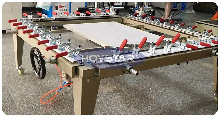 Hiina professionaalse tootjana soovime teile pakkuda HOYSTAR ekraani venitusmasinat, see masin integreerib kodumaiste ja rahvusvaheliste mudelite eelised, millel on kompaktne struktuur, kõrge pinge, mugav töö ja suurepärane profiil. Sobib suureformaadiliste reklaamekraanide raamide valmistamiseks ja ekraaniraamide professionaalseks partii tootmiseks. Masin tagab tõhusa, stabiilse ja usaldusväärse jõudluse, mistõttu sobib see professionaalse siiditrüki raami valmistamise nõudmistele.