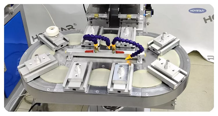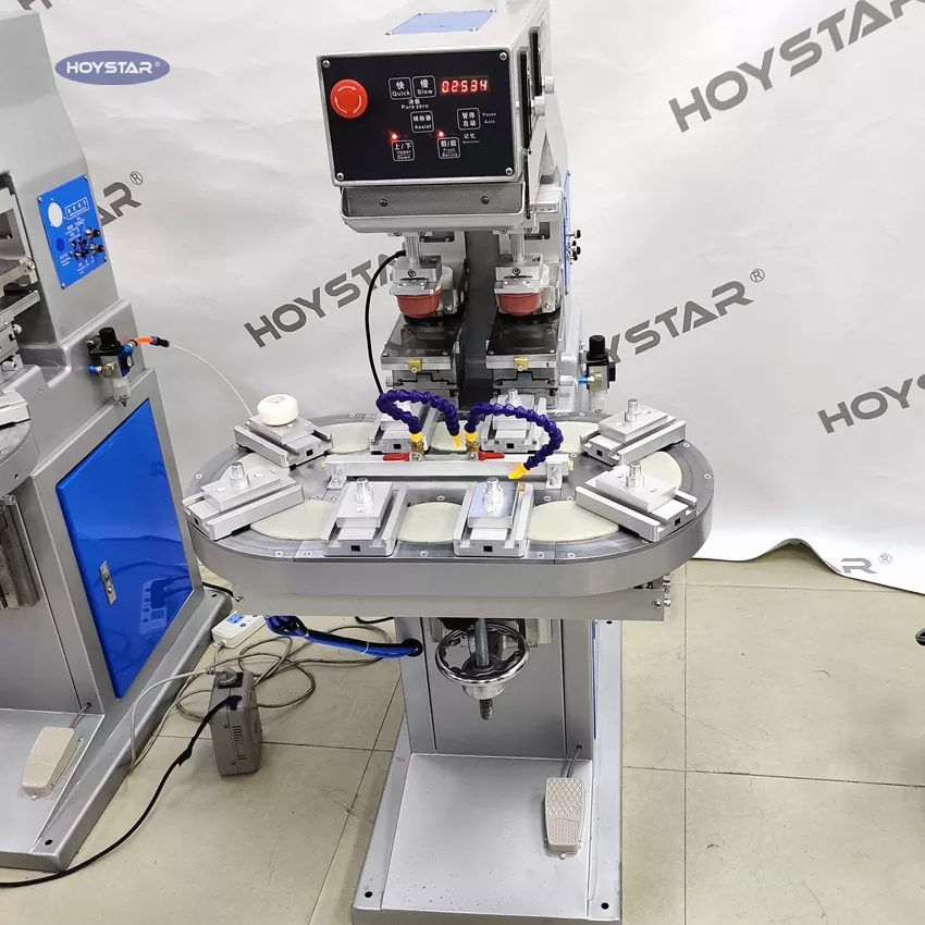 Professionaalse Hiina tootjana soovime pakkuda teile suure tõhususega HOYSTAR kahevärvilise pöörleva laua tampoontrüki masinat. See masin võimaldab toodetele pidevat kahevärvilist tampoonprintimist ühe värvi registreerimisega ühe tsükli jooksul. Võrreldes süstikutüüpi padjaprinteritega on selle kiirus väga kiire. Sobib printimiseks mitmesugustele esemetele, sealhulgas elektroonikatoodetele, plastkestadele, riistvaratoodetele, kirjatarvetele ja väikese kunsti ja käsitöö pinnal olevatele logodele, mis vastavad teie kahele värvitrüki nõudele.