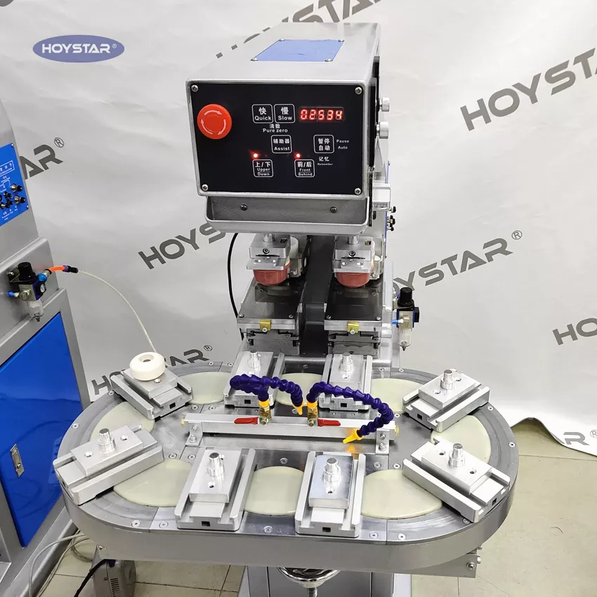 HOYSTAR on usaldusväärne tootja ja tarnija Hiinas; HOYSTAR kahevärviline pöörlev lauaprinter on suure võimsusega ja kulutõhus trükiseade. Masin pakub mugavat reguleerimist, stabiilset tööd ja head printimisefekti. Masin tagab stabiilse printimiskvaliteedi ja sobib paljude esemete, nagu elektroonikatooted, plastkestad, riistvaratooted, kirjatarbed, väikekunst ja käsitöö, aga ka kingituste pinnal olevate väikeste logode ja muu printimiseks. Võib täita klientide erinevaid kahevärvilise printimise nõudeid.