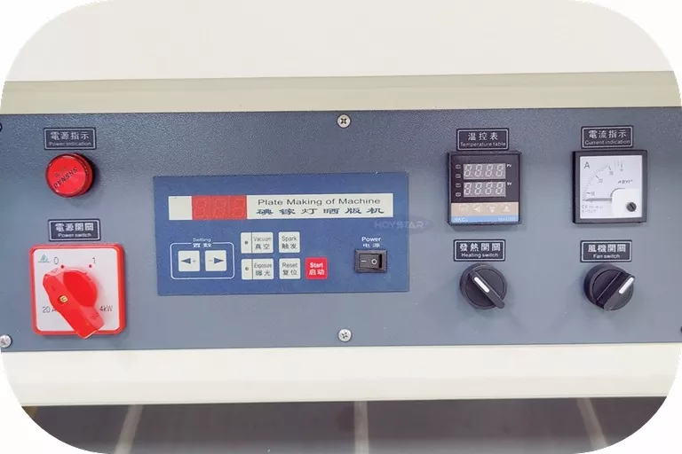 Juhtpaneeliga siiditrüki kuivatamisega UV-vaakum-säritusmasin, mis on varustatud juhtpaneeliga, saab masina säri- ja kuivamisaega vabalt vastavalt vajadustele reguleerida